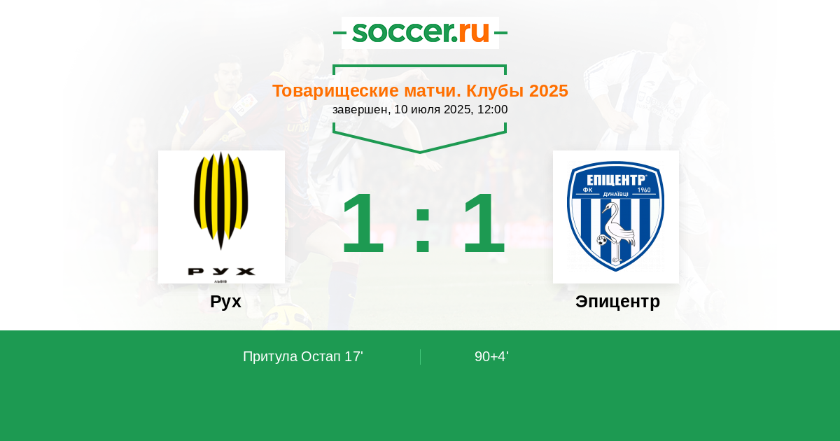 Протокол матча Рух против Эпицентр