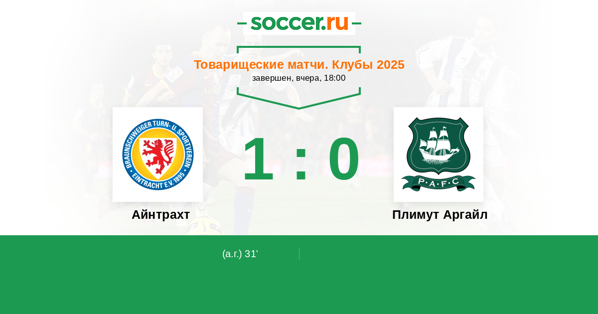 Протокол матча Айнтрахт против Плимут Аргайл