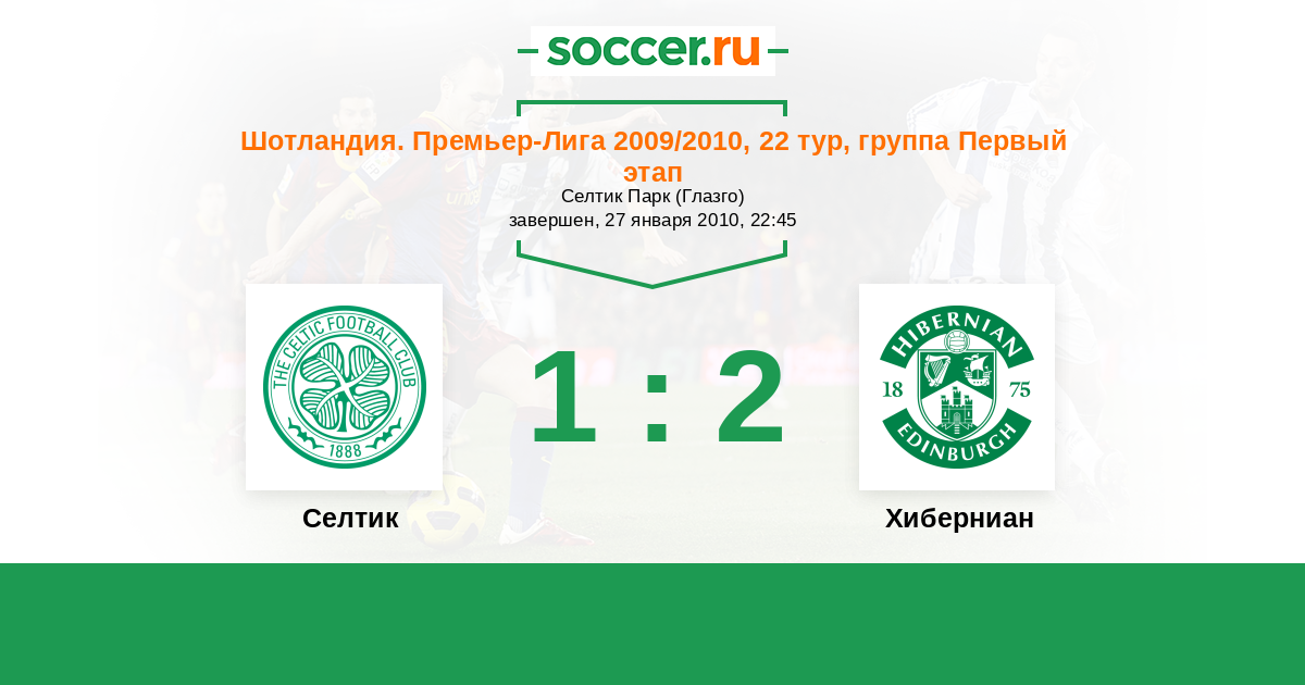 Шотландия. Премьер-Лига 04.04.2010 Хиберниан Логотип футбольный клуб Хиберниан (Эдинбург) 0:1 Логотип футбольный клуб Селтик (Глазго) Селтик
