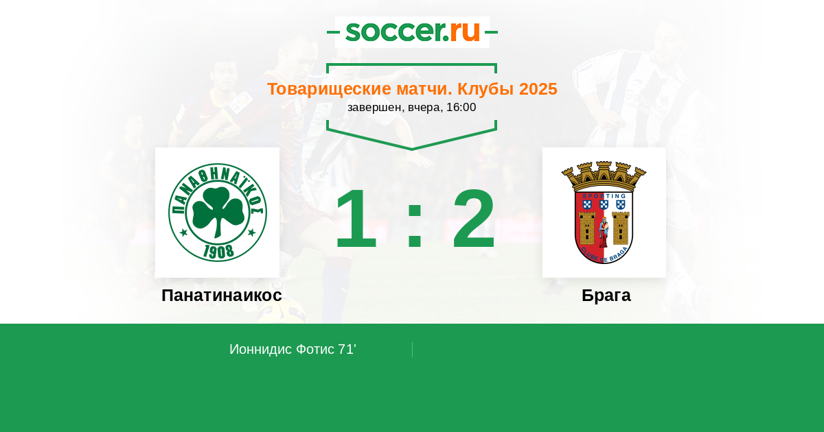 Протокол матча Панатинаикос против Брага
