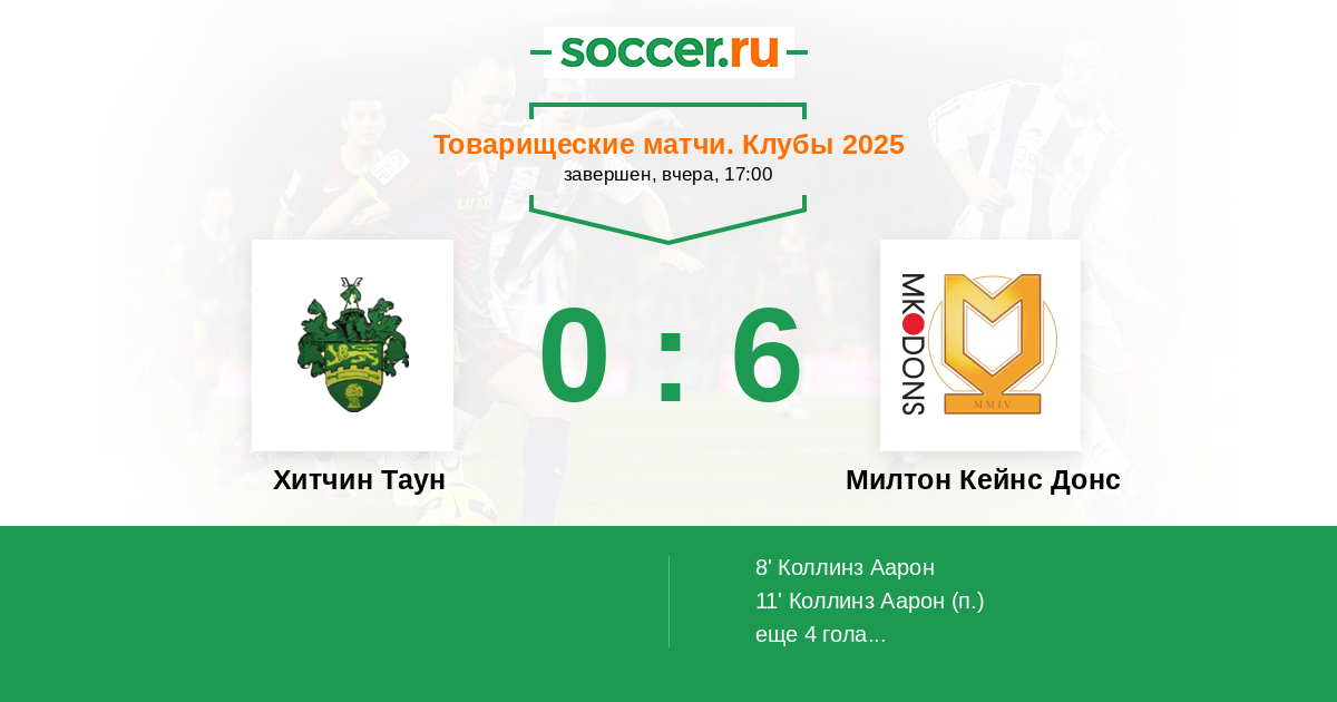 Протокол матча Хитчин Таун против Милтон Кейнс Донс