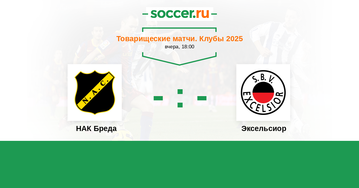 Товарищеские матчи. Клубы 20.07.2024 НАК Бреда Логотип футбольный клуб НАК Бреда 1:1 Логотип футбольный клуб Эксельсиор (Роттердам) Эксельсиор