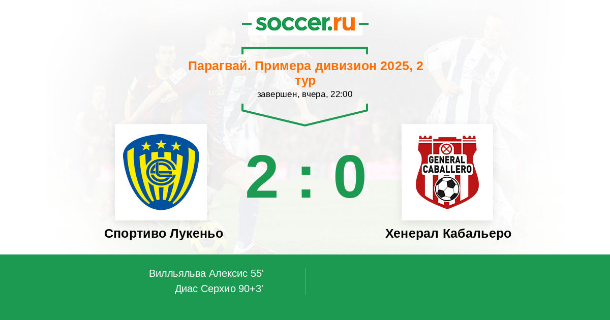 Протокол матча Спортиво Лукеньо против Хенерал Кабальеро