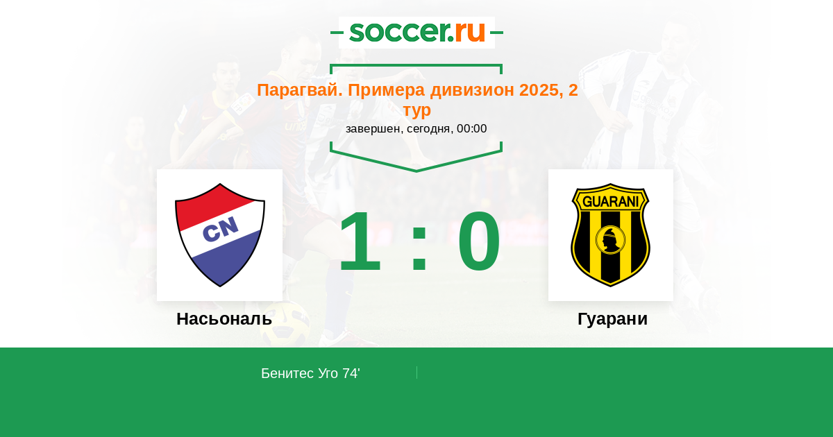 Протокол матча Насьональ против Гуарани