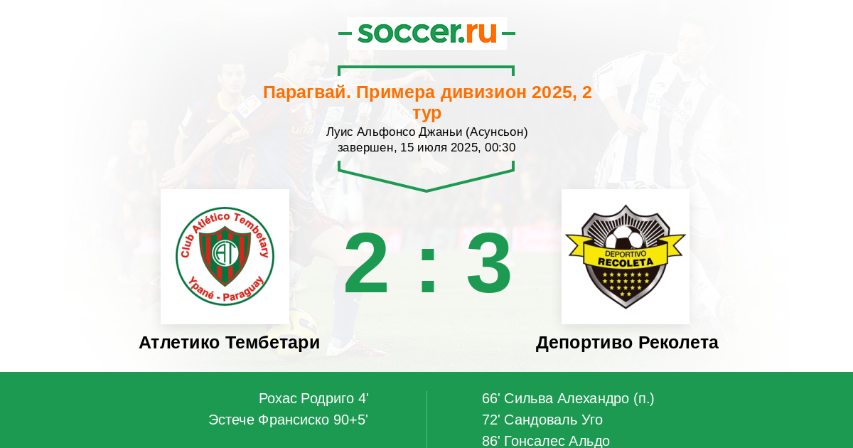Протокол матча Атлетико Тембетари против Депортиво Реколета