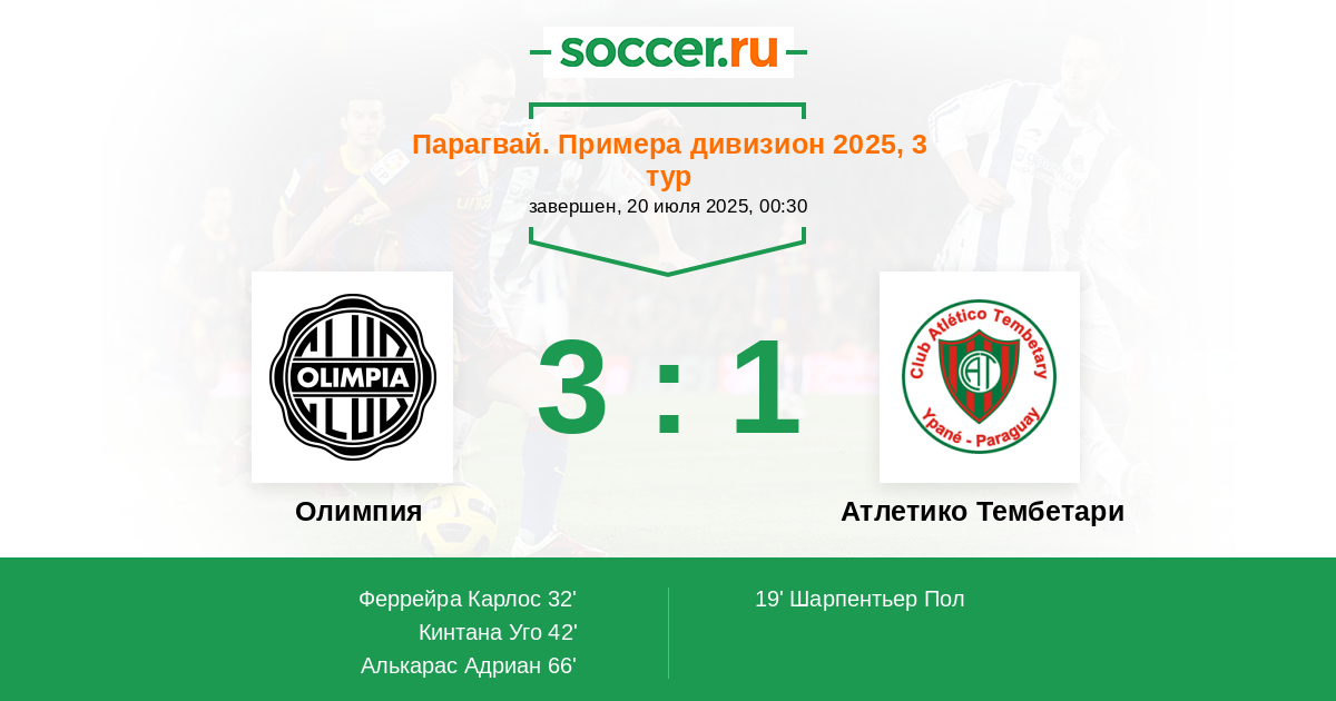 Протокол матча Олимпия против Атлетико Тембетари