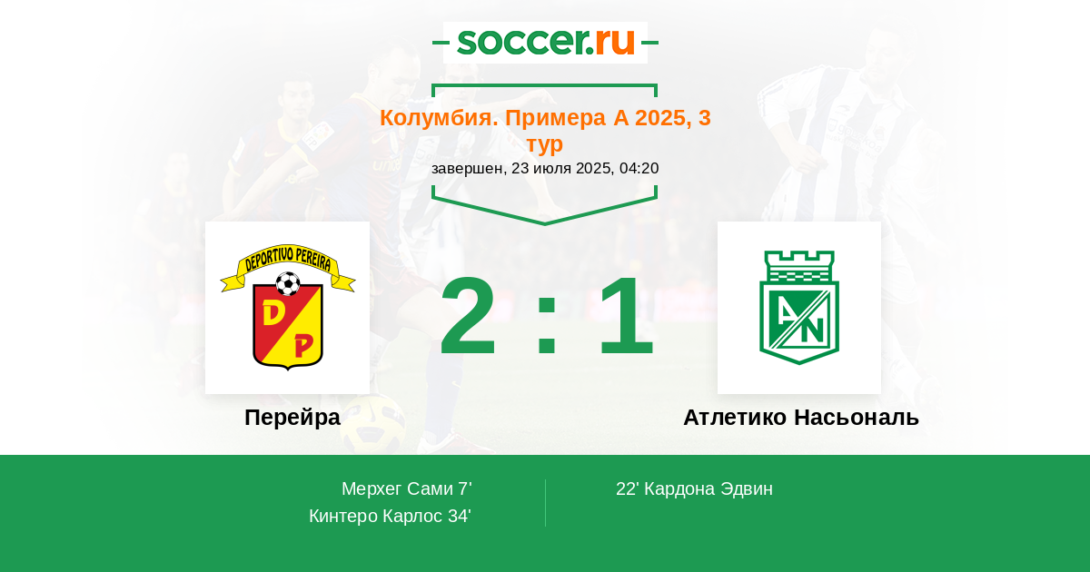 Протокол матча Перейра против Атлетико Насьональ