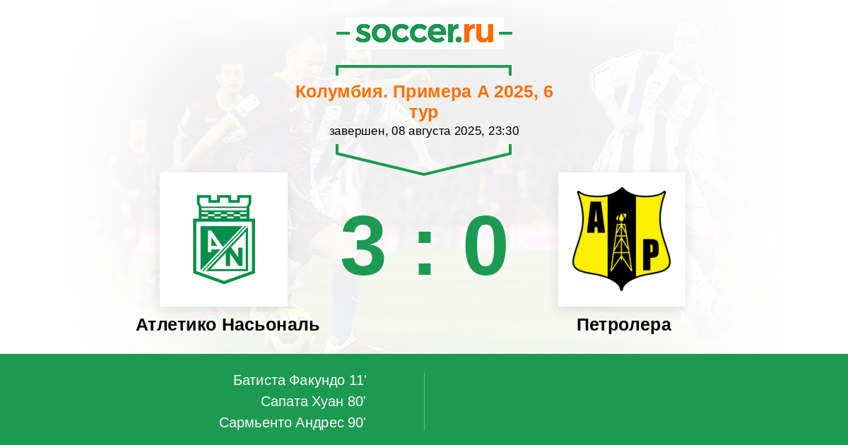 Протокол матча Атлетико Насьональ против Петролера