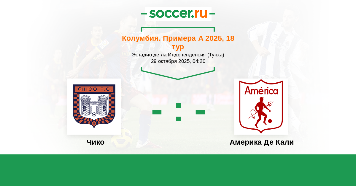 Колумбия. Примера А 07.10.2018 Чико Логотип футбольный клуб Чико (Тунха) 2:1 Логотип футбольный клуб Америка Де Кали Америка Де Кали