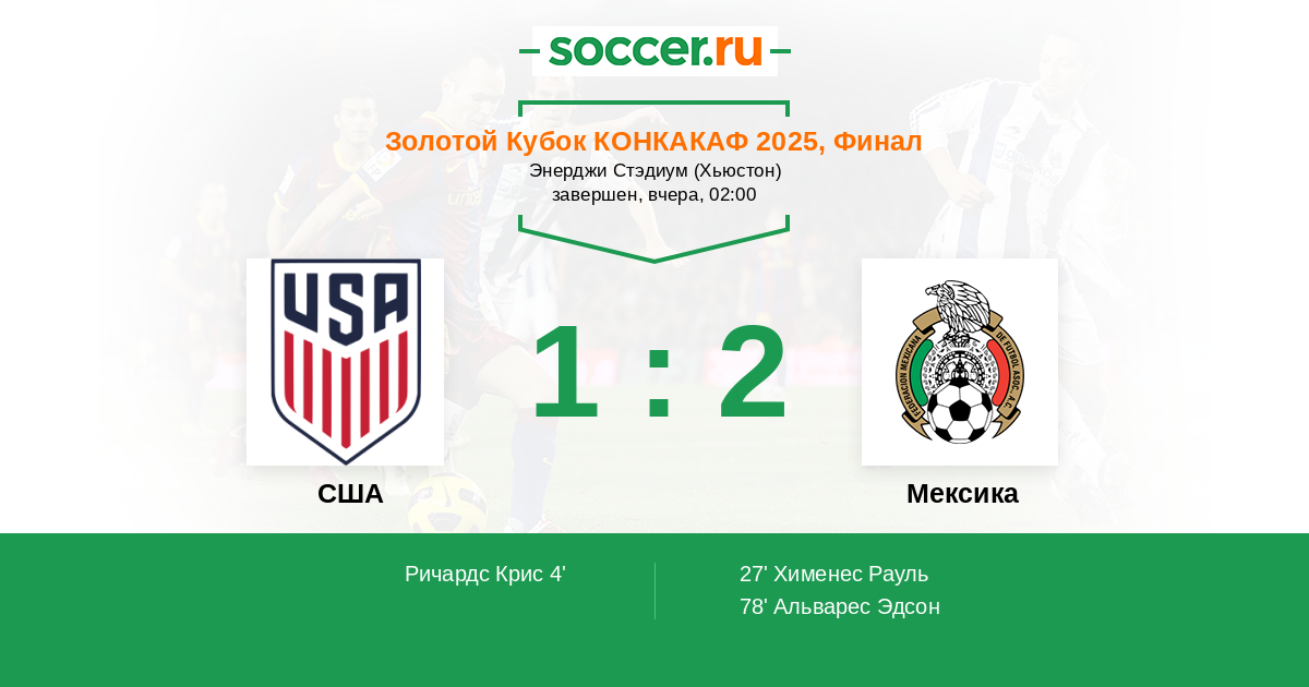 Протокол матча США против Мексика