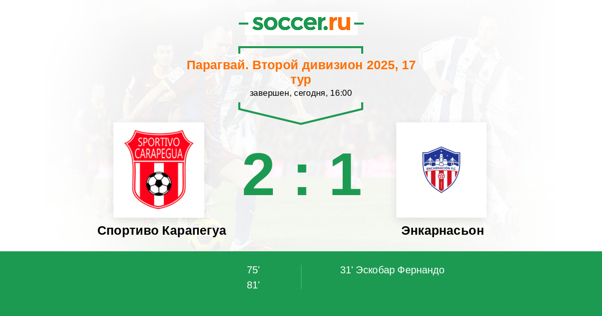 Протокол матча Спортиво Карапегуа против Энкарнасьон