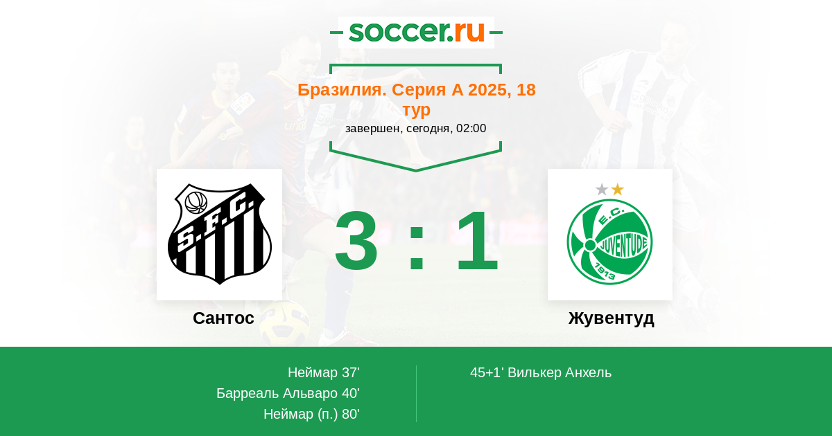Протокол матча Сантос против Жувентуд
