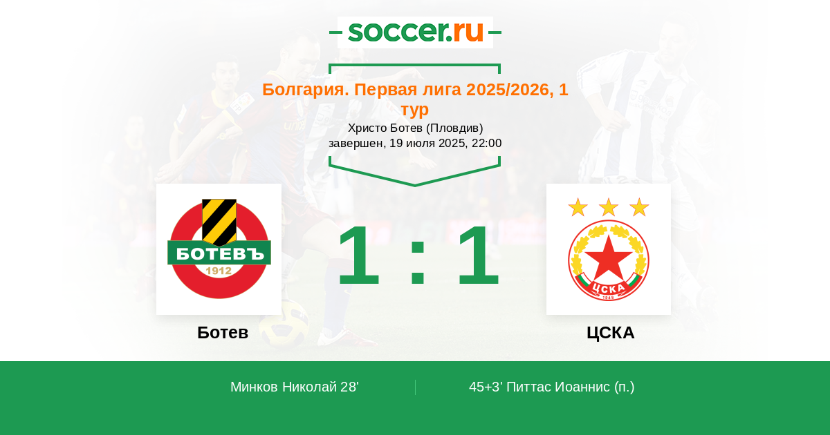 Протокол матча Ботев против ЦСКА