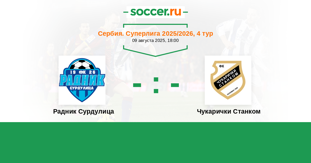 Протокол матча Радник Сурдулица против Чукарички Станком