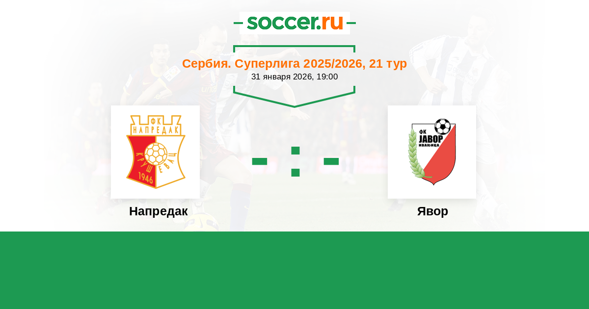 Сербия. Суперлига 12.02.2021 Напредак Логотип футбольный клуб Напредак (Крушевац) 1:1 Логотип футбольный клуб Явор (Иваньица) Явор