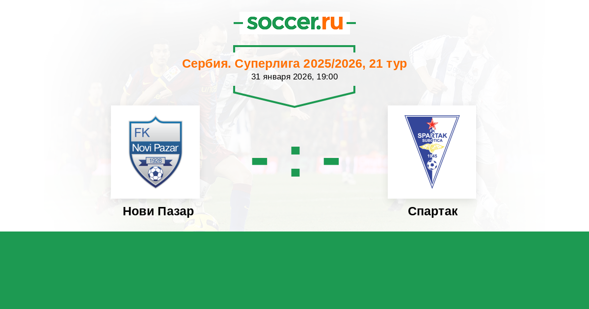 Сербия. Суперлига 15.10.2021 Нови Пазар Логотип футбольный клуб Нови Пазар 0:1 Логотип футбольный клуб Спартак Суботица Спартак Суботица