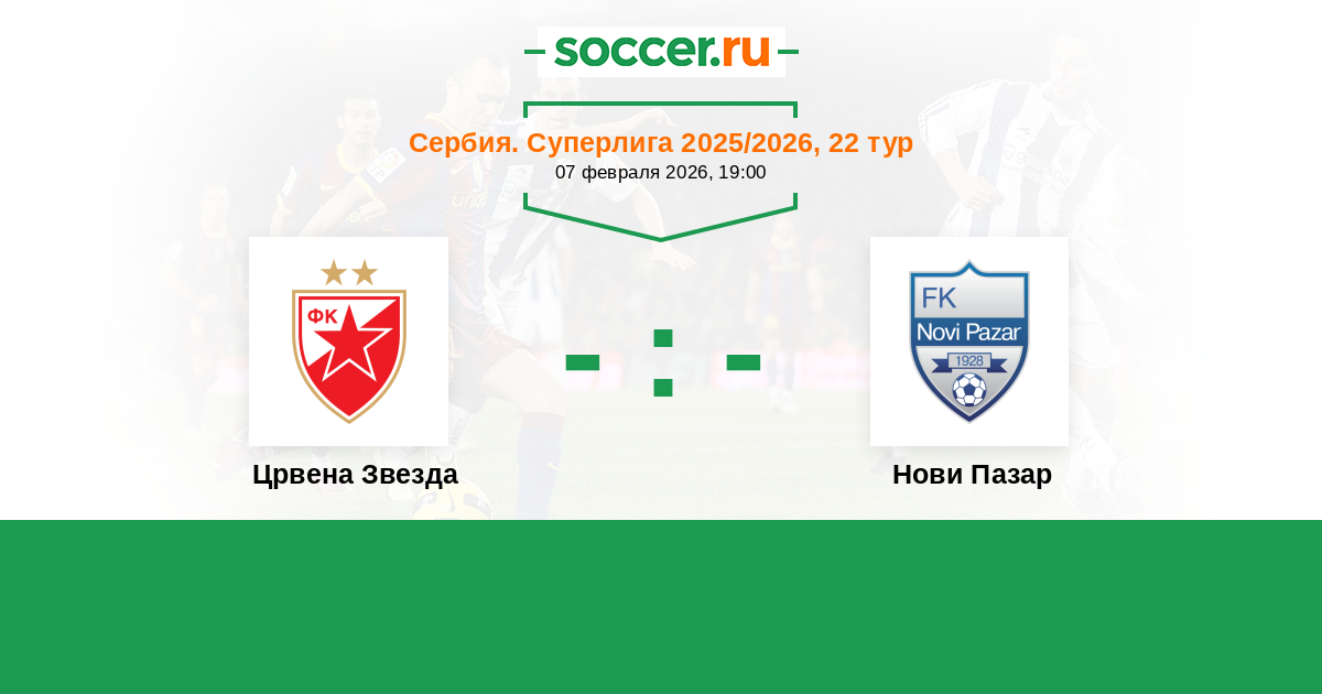 Сербия. Суперлига 07.02.2021 Нови Пазар Логотип футбольный клуб Нови Пазар 1:3 Логотип футбольный клуб Црвена Звезда (Белград) Црвена Звезда