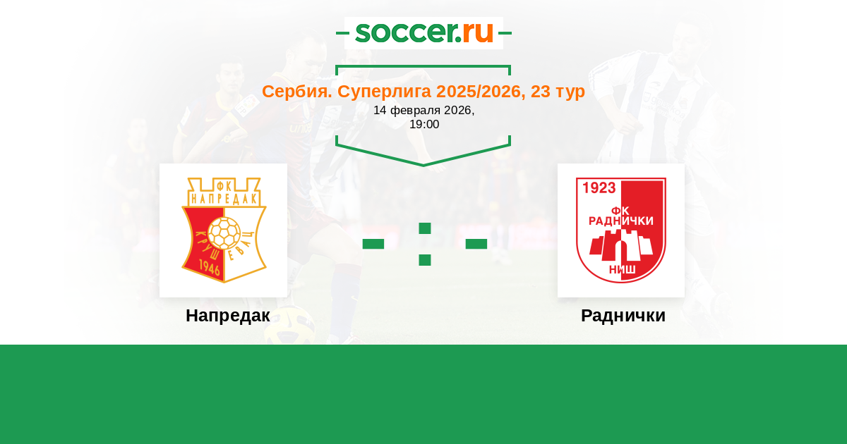 Сербия. Суперлига 23.02.2023 Напредак Логотип футбольный клуб Напредак (Крушевац) 2:0 Логотип футбольный клуб Раднички (Ниш) Раднички