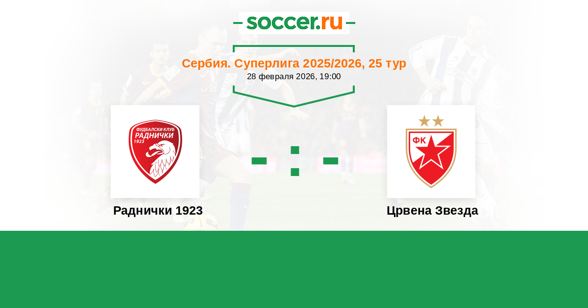 Сербия. Суперлига 28.09.2025 Црвена Звезда Логотип футбольный клуб Црвена Звезда (Белград) 2:1 Логотип футбольный клуб Раднички 1923 (Крагуевац) Раднички 1923