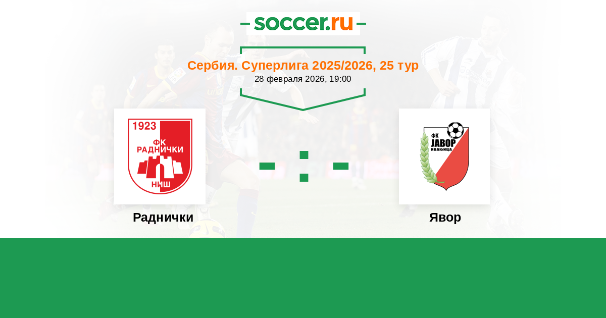 Сербия. Суперлига 07.03.2018 Явор Логотип футбольный клуб Явор (Иваньица) 1:3 Логотип футбольный клуб Раднички (Ниш) Раднички