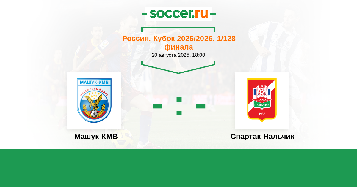 Россия. Вторая лига. Дивизион «Б». Группа 1 29.07.2023 Спартак-Нальчик Логотип футбольный клуб Спартак-Нальчик 0:1 Логотип футбольный клуб Машук-КМВ (Пятигорск) Машук-КМВ