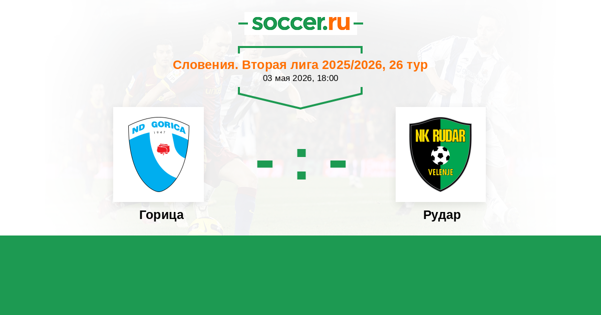 Словения. Вторая лига 18.10.2025 Рудар Логотип футбольный клуб Рудар (Велене) 2:1 Логотип футбольный клуб Горица (Ново-Горица) Горица