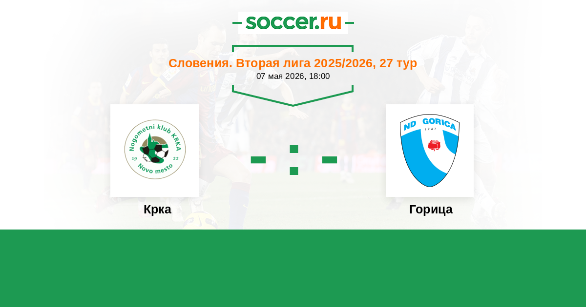 Словения. Вторая лига 06.04.2025 Крка Логотип футбольный клуб Крка 1:3 Логотип футбольный клуб Горица (Ново-Горица) Горица