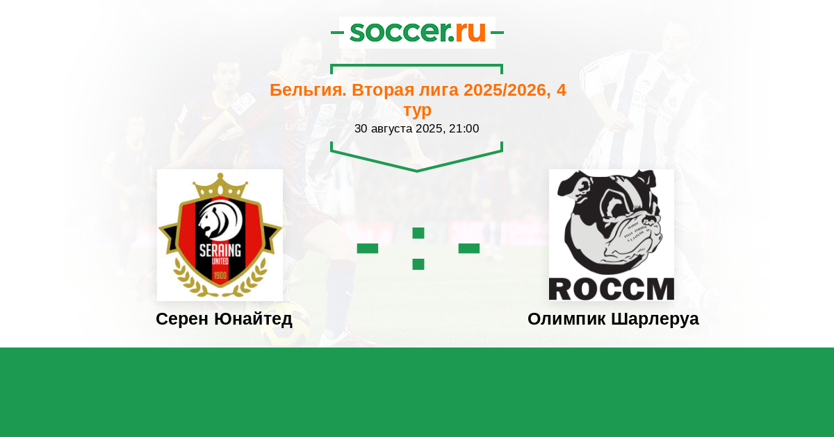 Протокол матча Серен Юнайтед против Олимпик Шарлеруа