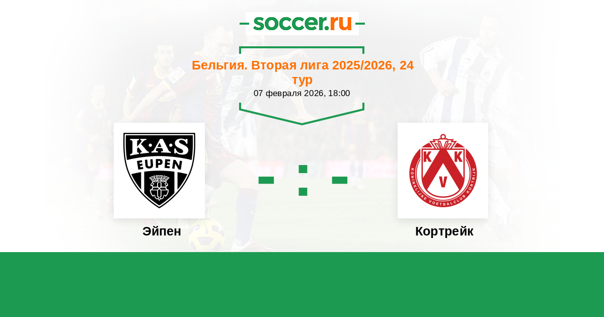 Бельгия. Про-Лига 09.02.2019 Эйпен Логотип футбольный клуб Эйпен 0:1 Логотип футбольный клуб Кортрейк Кортрейк