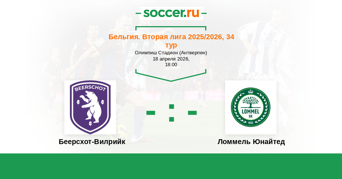 Бельгия. 1B Про Лига 26.10.2025 Ломмель Юнайтед Логотип футбольный клуб Ломмель Юнайтед 1:2 Логотип футбольный клуб Беерсхот-Вилрийк Беерсхот-Вилрийк