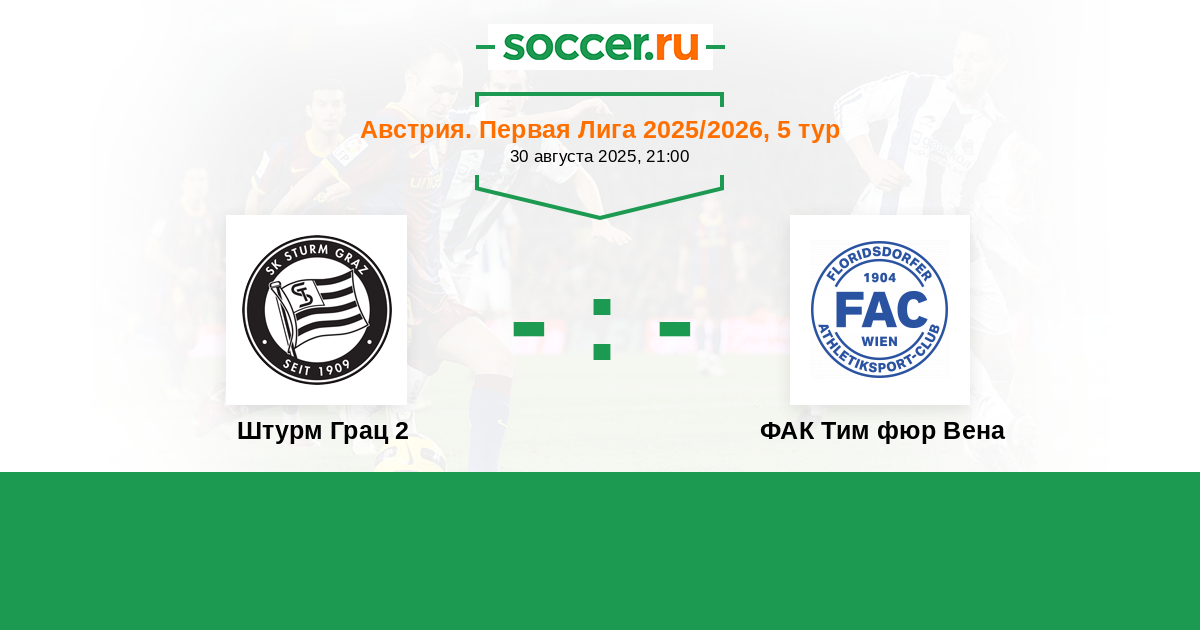 Протокол матча Штурм Грац 2 против ФАК Тим фюр Вена