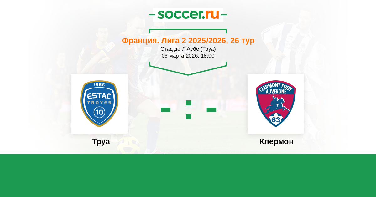 Франция. Лига 2 22.10.2010 Труа Логотип футбольный клуб Труа 1:1 Логотип футбольный клуб Клермон (Клермон-Ферранд) Клермон