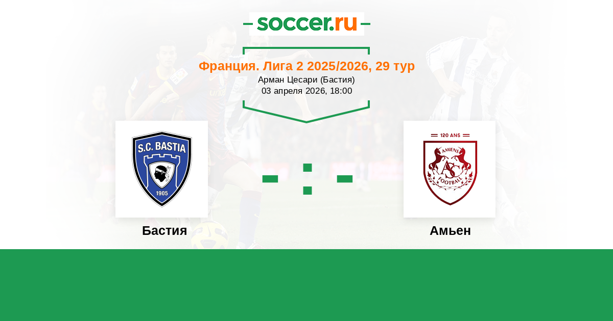 Франция. Лига 2 30.10.2021 Бастия Логотип футбольный клуб Бастия 0:0 Логотип футбольный клуб Амьен Амьен