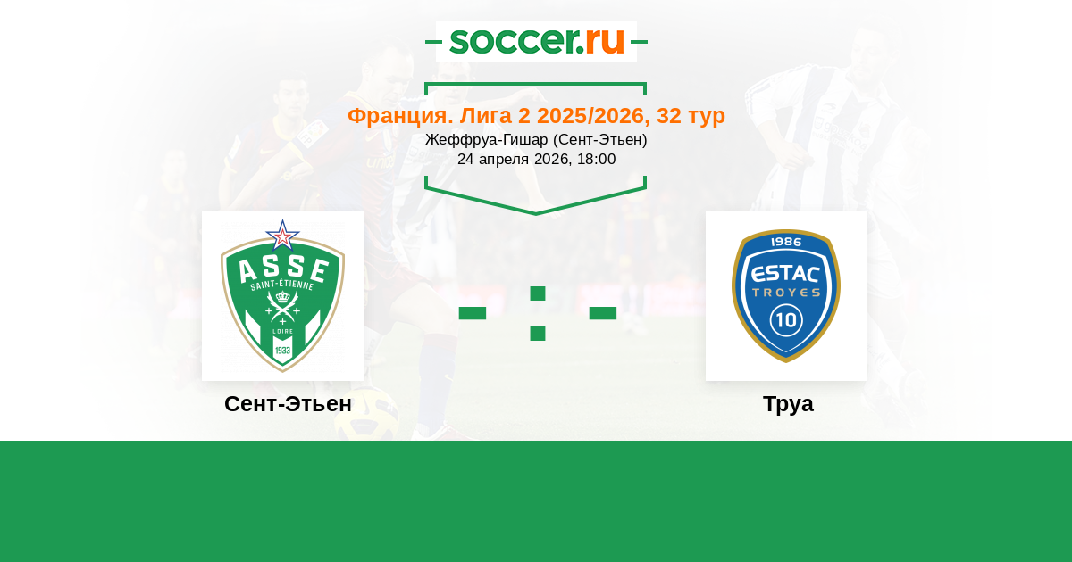 Франция. Лига 2 08.11.2025 Труа Логотип футбольный клуб Труа 2:3 Логотип футбольный клуб Сент-Этьен Сент-Этьен