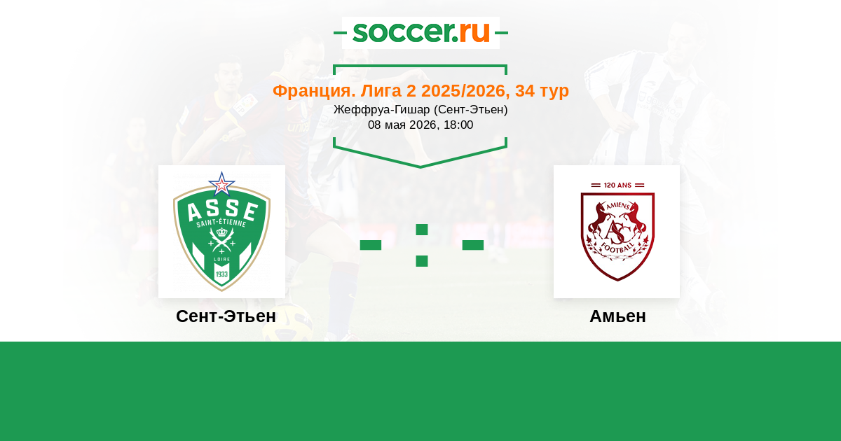 Франция. Лига 2 27.01.2024 Сент-Этьен Логотип футбольный клуб Сент-Этьен 0:1 Логотип футбольный клуб Амьен Амьен