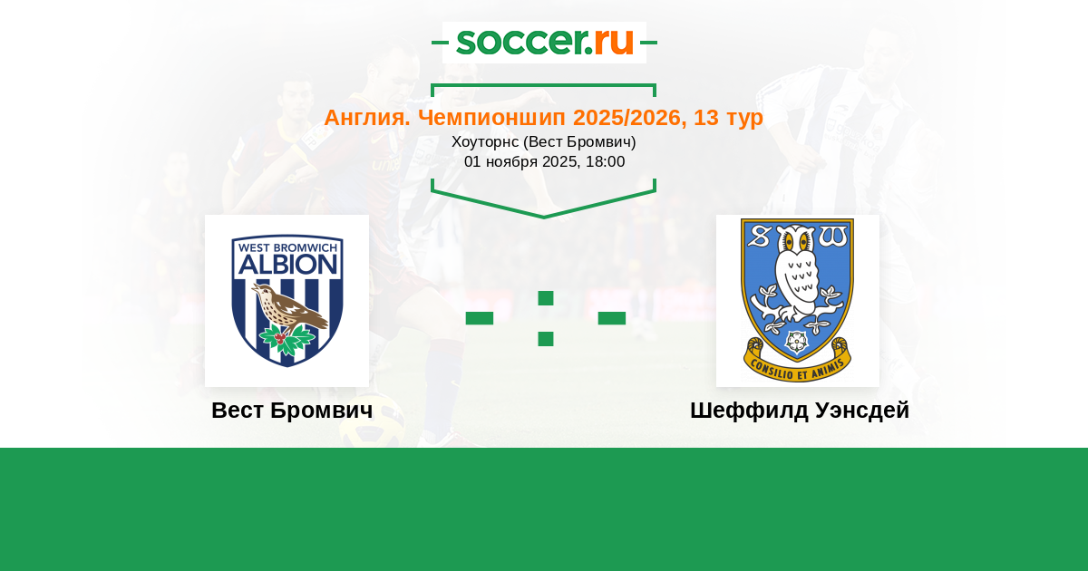 Протокол матча Вест Бромвич против Шеффилд Уэнсдей