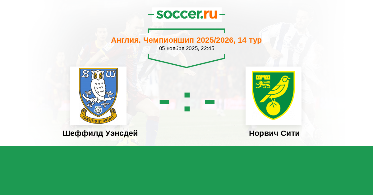 Протокол матча Шеффилд Уэнсдей против Норвич Сити