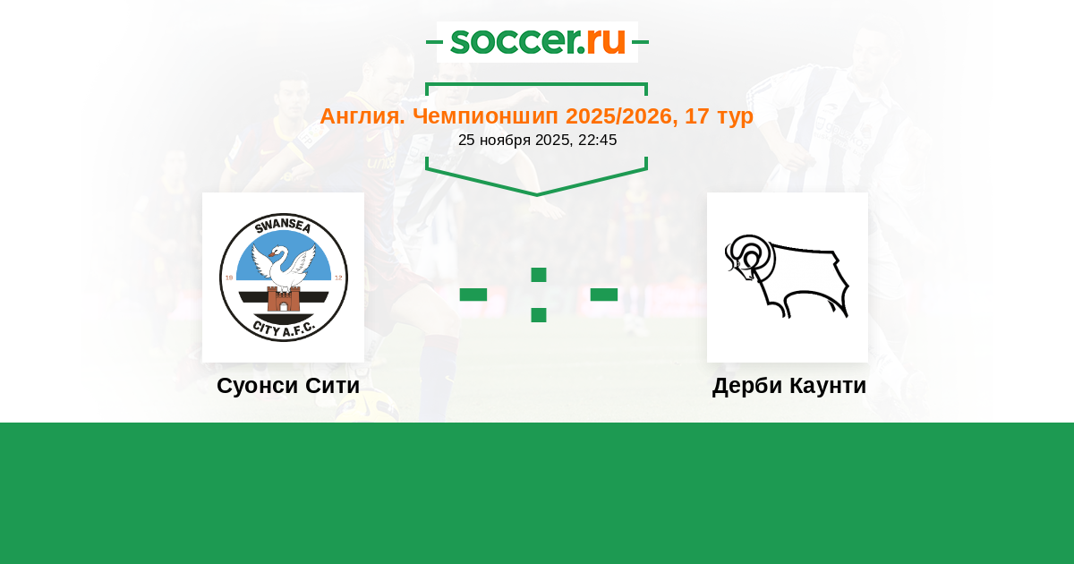 Протокол матча Суонси Сити против Дерби Каунти