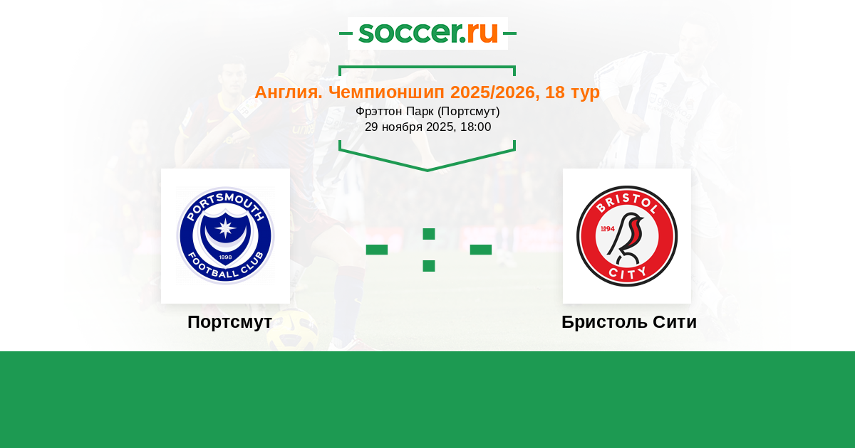 Протокол матча Портсмут против Бристоль Сити