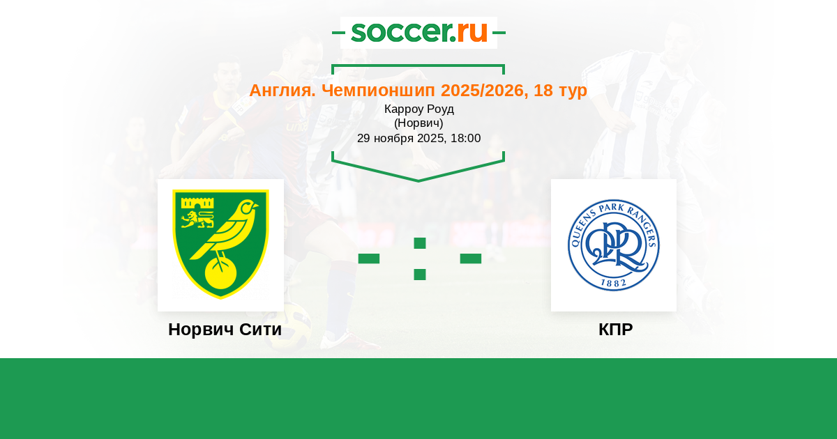 Протокол матча Норвич Сити против КПР
