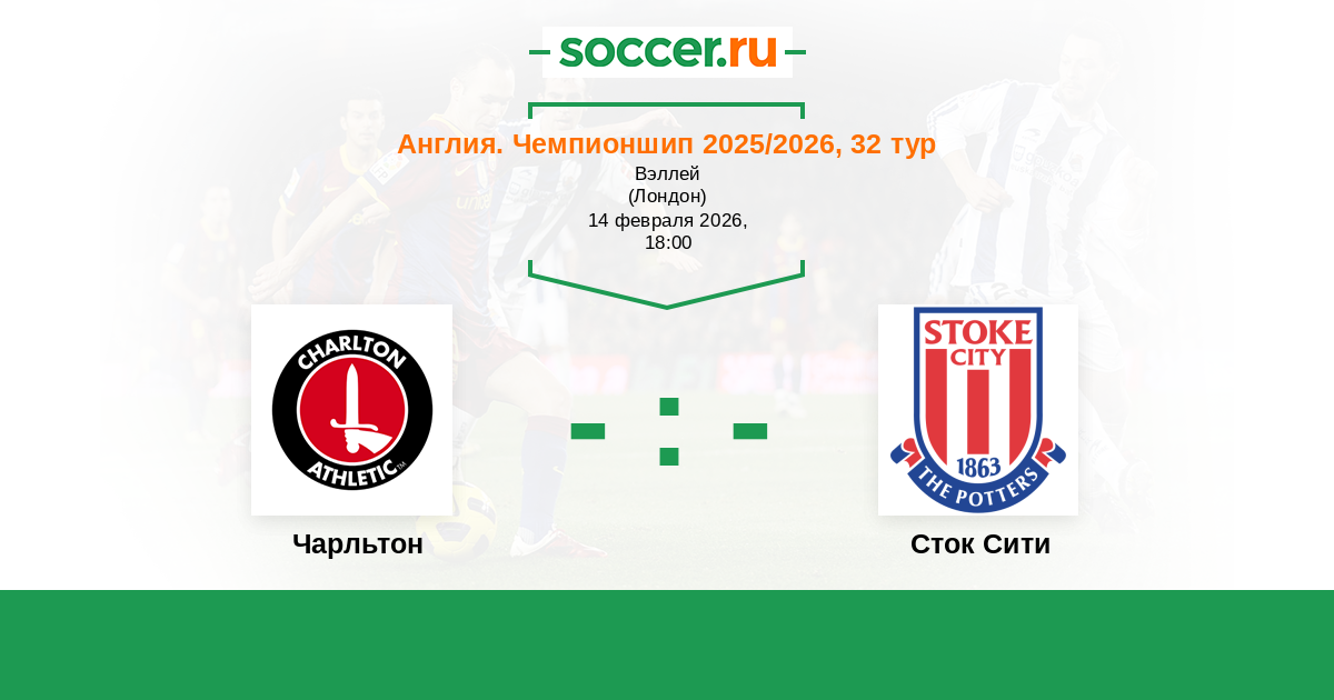Англия. Чемпионшип 25.11.2025 Сток Сити Логотип футбольный клуб Сток Сити (Сток-он-Трент) 3:0 Логотип футбольный клуб Чарльтон Чарльтон
