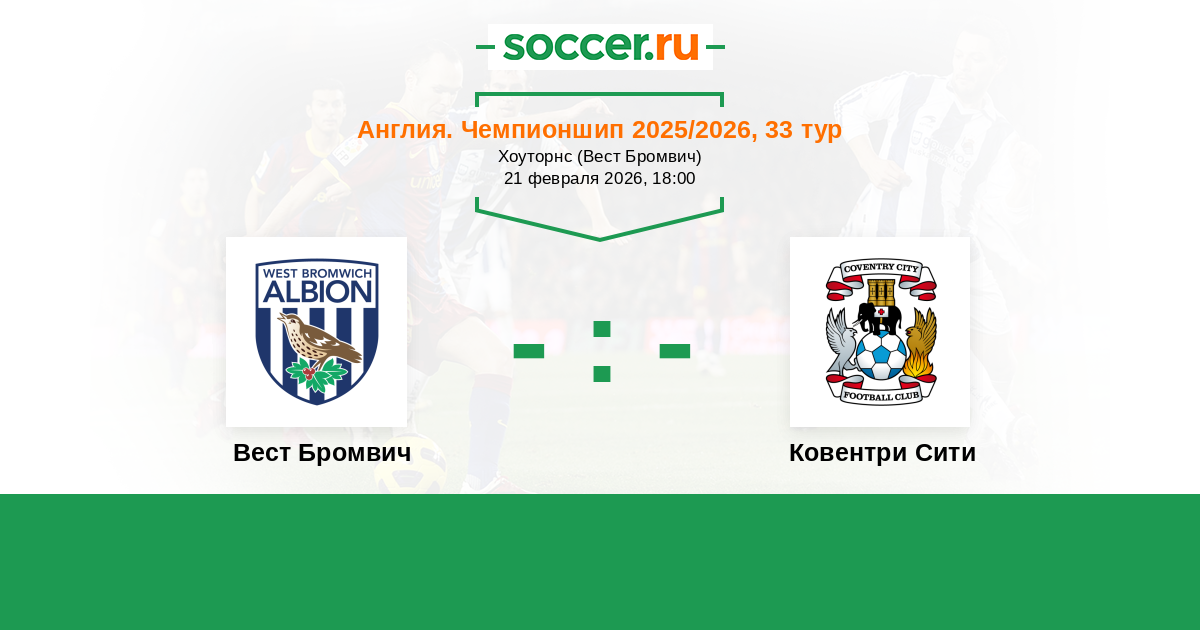 Англия. Чемпионшип 23.04.2022 Вест Бромвич Логотип футбольный клуб Вест Бромвич 0:0 Логотип футбольный клуб Ковентри Сити Ковентри Сити