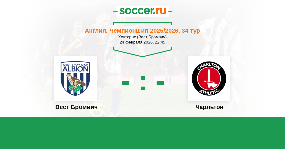 Англия. Чемпионшип 04.11.2025 Чарльтон Логотип футбольный клуб Чарльтон 1:0 Логотип футбольный клуб Вест Бромвич Вест Бромвич
