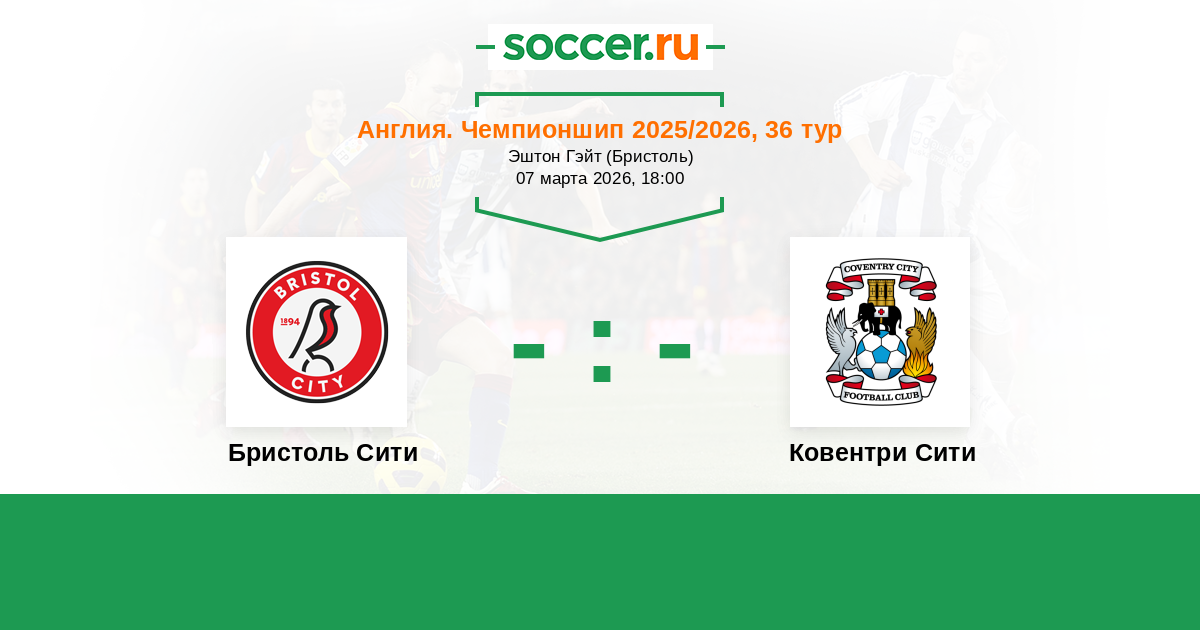 Англия. Чемпионшип 22.02.2022 Бристоль Сити Логотип футбольный клуб Бристоль Сити 1:2 Логотип футбольный клуб Ковентри Сити Ковентри Сити