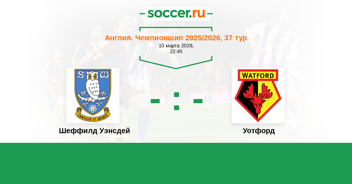 Англия. Чемпионшип 09.12.2025 Уотфорд Логотип футбольный клуб Уотфорд 1:1 Логотип футбольный клуб Шеффилд Уэнсдей Шеффилд Уэнсдей