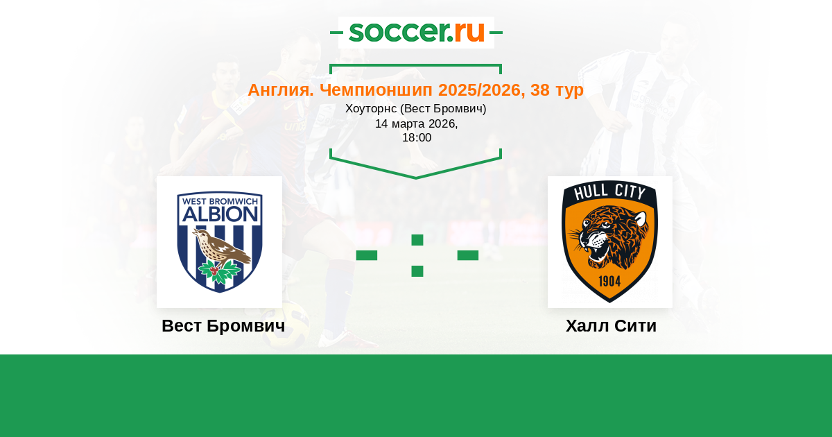 Англия. Чемпионшип 15.03.2025 Вест Бромвич Логотип футбольный клуб Вест Бромвич 1:1 Логотип футбольный клуб Халл Сити (Кингстон-апон-Халл) Халл Сити