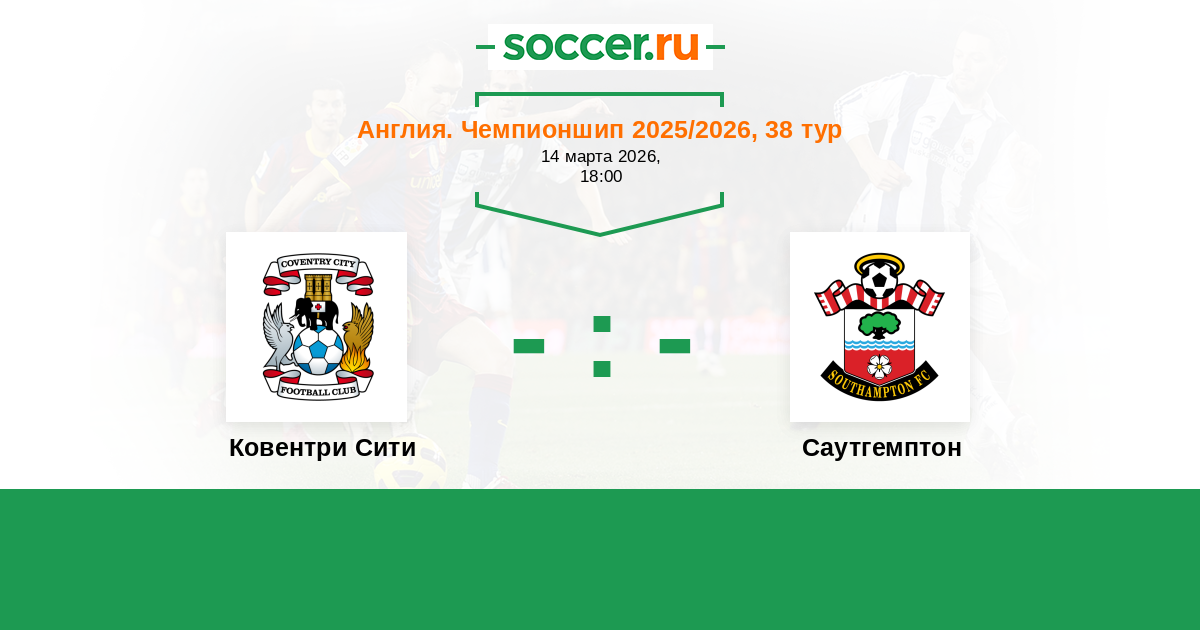 Англия. Чемпионшип 20.12.2025 Саутгемптон Логотип футбольный клуб Саутгемптон 1:1 Логотип футбольный клуб Ковентри Сити Ковентри Сити