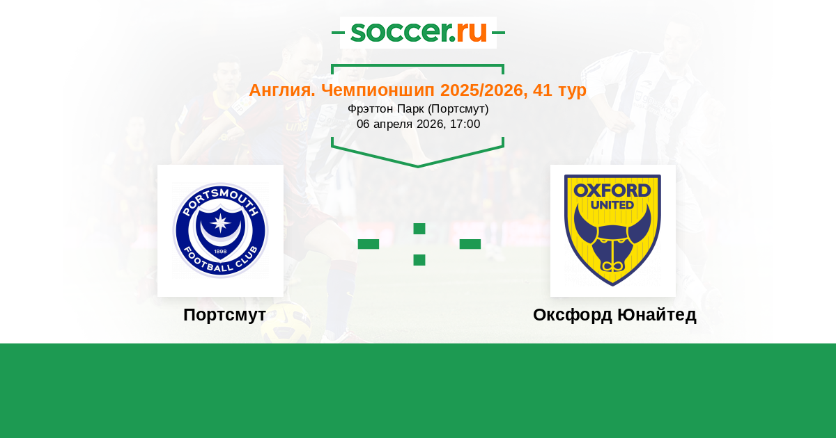 Англия. Чемпионшип 05.10.2024 Портсмут Логотип футбольный клуб Портсмут 1:1 Логотип футбольный клуб Оксфорд Юнайтед Оксфорд Юнайтед