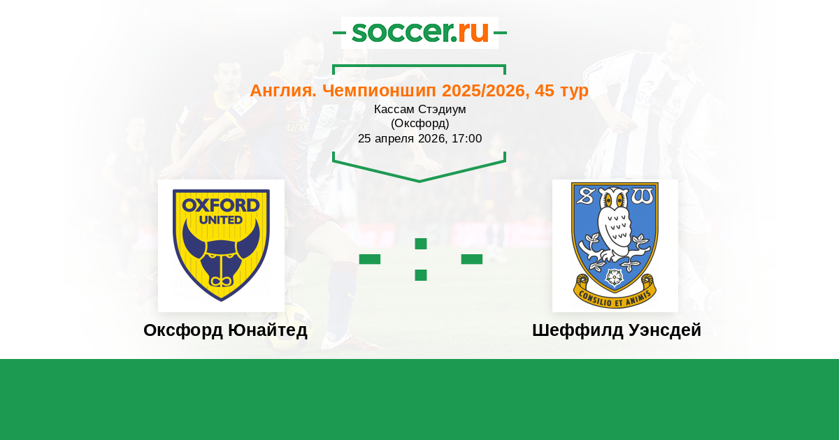 Англия. Чемпионшип 25.10.2025 Шеффилд Уэнсдей Логотип футбольный клуб Шеффилд Уэнсдей 1:2 Логотип футбольный клуб Оксфорд Юнайтед Оксфорд Юнайтед
