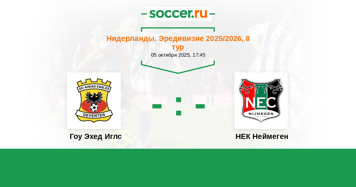 Протокол матча Гоу Эхед Иглс против НЕК Неймеген